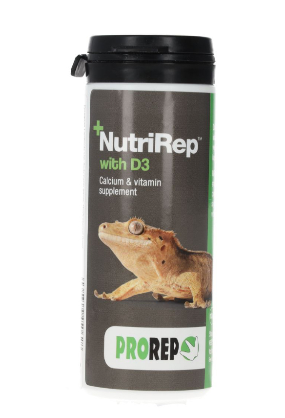 NutriRep Calcium with D3 Powder for dusting twice weekly on all reptile food.
